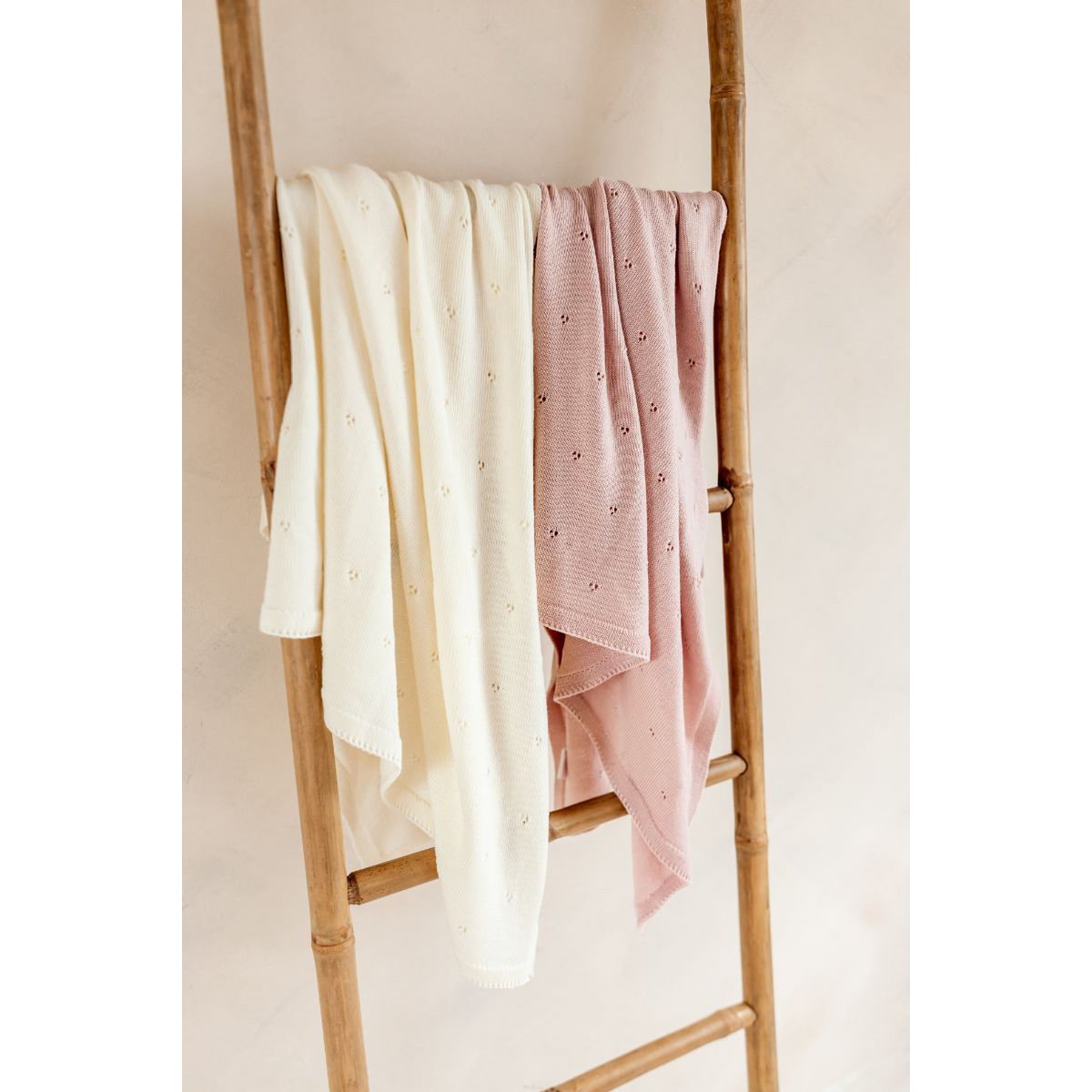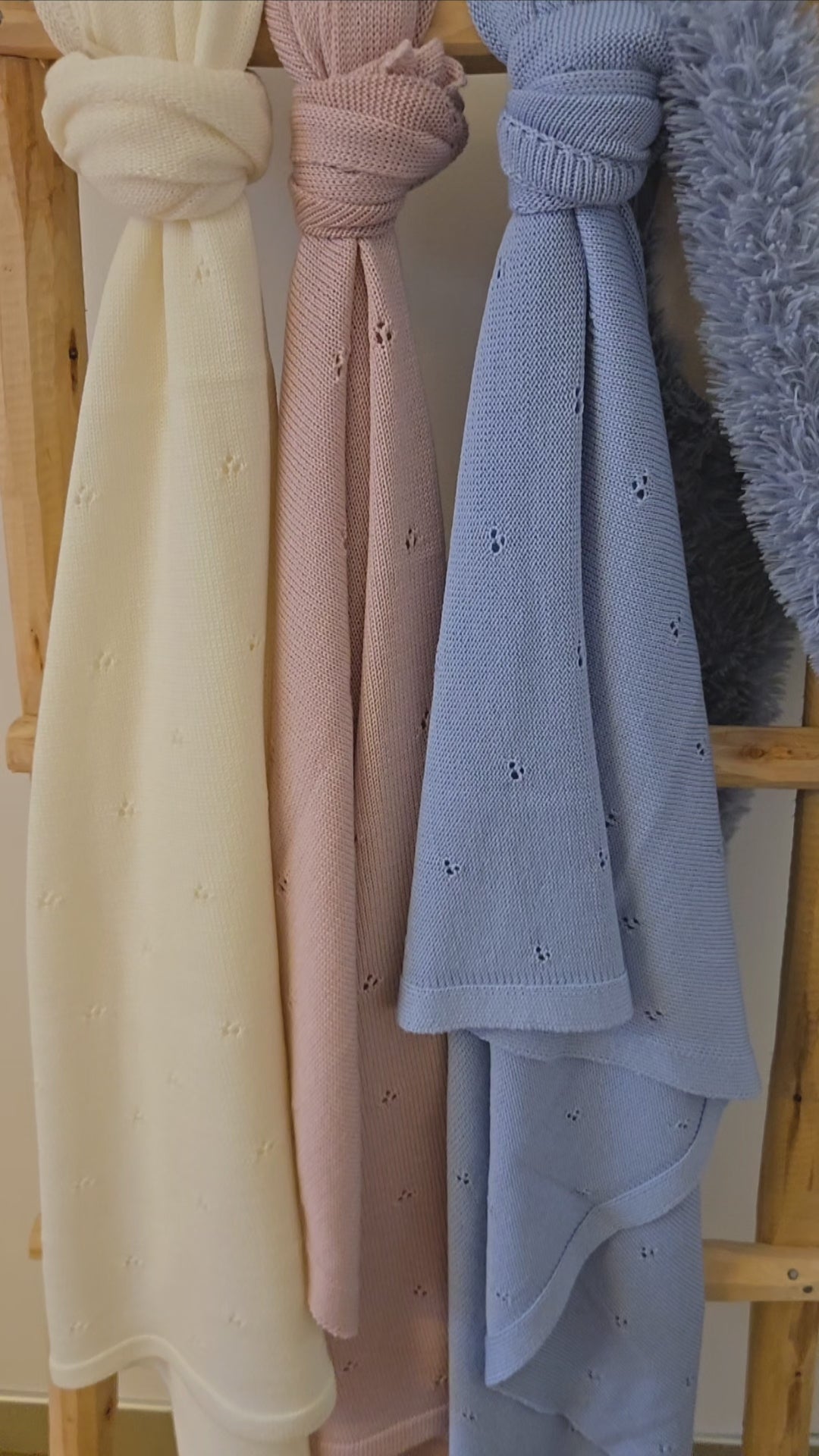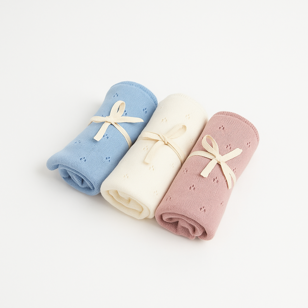Onze prachtige babydeken, verkrijgbaar in de zachte kleuren roze, blauw en gebroken wit, combineert stijl en functionaliteit. Het elegante ontwerp past perfect in elke babykamer en maakt elk moment samen nog specialer.